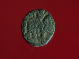 | Description / विवरण | It is a coin made of copper. The depression on obverse side depicts a deity sitting on a horse and holding a spear in his right hand. On reverse side bull in a sitting position. Shape is circular. Surface is smooth. Appearance is metallic bronze. |