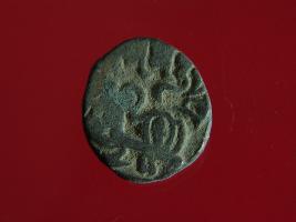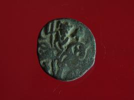 | Description / विवरण | It is a coin made of copper. The depression on obverse side depicts a deity sitting on a horse and holding a spear in his right hand. On reverse side bull in a sitting position. Shape is circular. Surface is smooth. Appearance is metallic bronze. |