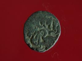 | Description / विवरण | It is a coin made of copper. The depression on obverse side depicts a deity sitting on a horse and holding a spear in his right hand. On reverse side bull in a sitting position. Shape is circular. Surface is smooth. Appearance is metallic bronze. |