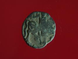 | Description / विवरण | It is a coin made of copper. The depression on obverse side depicts a deity sitting on a horse and holding a spear in his right hand. On reverse side bull in a sitting position. Shape is circular. Surface is smooth. Appearance is metallic bronze. |