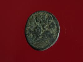 | Description / विवरण | It is a coin made of copper. The depression on obverse side depicts a deity sitting on a horse and holding a spear in his right hand. On reverse side bull in a sitting position. Shape is circular. Surface is smooth. Appearance is metallic bronze. |