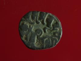 | Description / विवरण | It is a coin made of copper. The depression on obverse side depicts a deity sitting on a horse and holding a spear in his right hand. On reverse side bull in a sitting position. Shape is circular. Surface is smooth. Appearance is metallic bronze. |