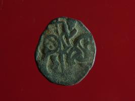 | Description / विवरण | It is a coin made of copper. The depression on obverse side depicts a deity sitting on a horse and holding a spear in his right hand. On reverse side bull in a sitting position. Shape is circular. Surface is smooth. Appearance is metallic bronze. |