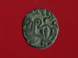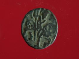 | Description / विवरण | It is a coin made of copper. The depression on obverse side depicts a deity sitting on a horse and holding a spear in his right hand. On reverse side bull in a sitting position. Shape is circular. Surface is smooth. Appearance is metallic bronze. |