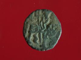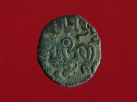 | Description / विवरण | It is a coin made of copper. The depression on obverse side depicts a deity sitting on a horse and holding a spear in his right hand. On reverse side bull in a sitting position. Shape is circular. Surface is smooth. Appearance is metallic bronze. |