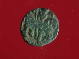 | Description / विवरण | It is a coin made of copper. The depression on obverse side depicts a deity sitting on a horse and holding a spear in his right hand. On reverse side bull in a sitting position. Shape is circular. Surface is smooth. Appearance is metallic bronze. |