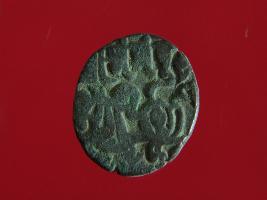 | Description / विवरण | It is a coin made of copper. The depression on obverse side depicts a deity sitting on a horse and holding a spear in his right hand. On reverse side bull in a sitting position. Shape is circular. Surface is smooth. Appearance is metallic bronze. |