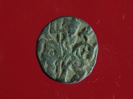 | Description / विवरण | It is a coin made of copper. The depression on obverse side depicts a deity sitting on a horse and holding a spear in his right hand. On reverse side bull in a sitting position. Shape is circular. Surface is smooth. Appearance is metallic bronze. |