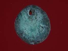 | Description / विवरण | Stratum Surface found It is a circular pendant made of copper. Deposition of patina on surface of the object. Surface is rough and one side of pendant is green in colour due to deposition of patina and other side is copper red in colour. |