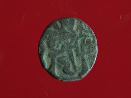 | Description / विवरण | It is a coin made of copper. The depression on obverse side depicts a deity sitting on a horse and holding a spear in his right hand. On reverse side bull in a sitting position. Shape is circular. Surface is smooth. Appearance is metallic bronze. |