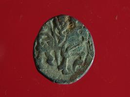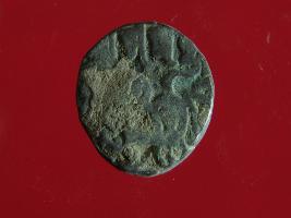 | Description / विवरण | It is a coin made of copper. The depression on obverse side depicts a deity sitting on a horse and holding a spear in his right hand. On reverse side bull in a sitting position. Shape is circular. Surface is smooth. Appearance is metallic bronze. |
