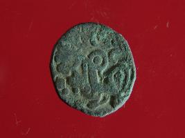 | Description / विवरण | It is a coin made of copper. The depression on obverse side depicts a deity sitting on a horse and holding a spear in his right hand. On reverse side bull in a sitting position. Shape is circular. Surface is smooth. Appearance is metallic bronze. |
