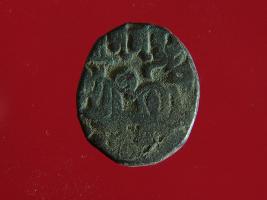 | Description / विवरण | It is a coin made of copper. The depression on obverse side depicts a deity sitting on a horse and holding a spear in his right hand. On reverse side bull in a sitting position. Shape is circular. Surface is smooth. Appearance is metallic bronze. |