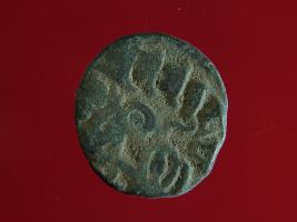 | Description / विवरण | It is a coin made of copper. The depression on obverse side depicts a deity sitting on a horse and holding a spear in his right hand. On reverse side bull in a sitting position. Shape is circular. Surface is smooth. Appearance is metallic bronze. |