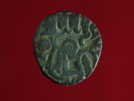 | Description / विवरण | It is a coin made of copper. The depression on obverse side depicts a deity sitting on a horse and holding a spear in his right hand. On reverse side bull in a sitting position. Shape is circular. Surface is smooth. Appearance is metallic bronze. |