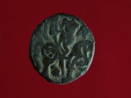 | Description / विवरण | It is a coin made of copper. The depression on obverse side depicts a deity sitting on a horse and holding a spear in his right hand. On reverse side bull in a sitting position. Shape is circular. Surface is smooth. Appearance is metallic bronze. |