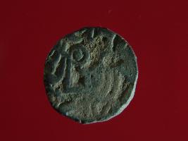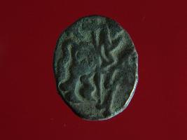 | Description / विवरण | It is a coin made of copper. The depression on obverse side depicts a deity sitting on a horse and holding a spear in his right hand. On reverse side bull in a sitting position. Shape is circular. Surface is smooth. Appearance is metallic bronze. |