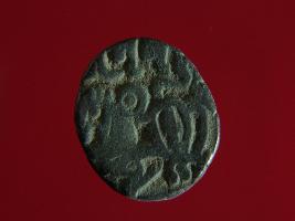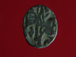 | Description / विवरण | It is a coin made of copper. The depression on obverse side depicts a deity sitting on a horse and holding a spear in his right hand. On reverse side bull in a sitting position. Shape is circular. Surface is smooth. Appearance is metallic bronze. |