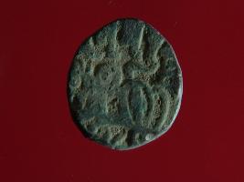 | Description / विवरण | It is a coin made of copper. The depression on obverse side depicts a deity sitting on a horse and holding a spear in his right hand. On reverse side bull in a sitting position. Shape is circular. Surface is smooth. Appearance is metallic bronze. |