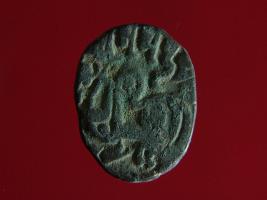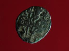 | Description / विवरण | It is a coin made of copper. The depression on obverse side depicts a deity sitting on a horse and holding a spear in his right hand. On reverse side bull in a sitting position. Shape is circular. Surface is smooth. Appearance is metallic bronze. |