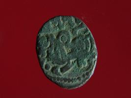 | Description / विवरण | It is a coin made of copper. The depression on obverse side depicts a deity sitting on a horse and holding a spear in his right hand. On reverse side bull in a sitting position. Shape is circular. Surface is smooth. Appearance is metallic bronze. |