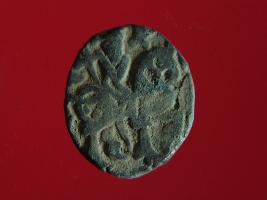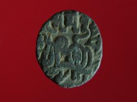 | Description / विवरण | It is a coin made of copper. The depression on obverse side depicts a deity sitting on a horse and holding a spear in his right hand. On reverse side bull in a sitting position. Shape is circular. Surface is smooth. Appearance is metallic bronze. |