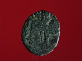 | Description / विवरण | It is a coin made of copper. The depression on obverse side depicts a deity sitting on a horse and holding a spear in his right hand. On reverse side bull in a sitting position. Shape is circular. Surface is smooth. Appearance is metallic bronze. |