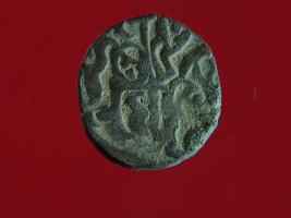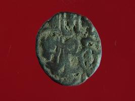 | Description / विवरण | It is a coin made of copper. The depression on obverse side depicts a deity sitting on a horse and holding a spear in his right hand. On reverse side bull in a sitting position. Shape is circular. Surface is smooth. Appearance is metallic bronze. |