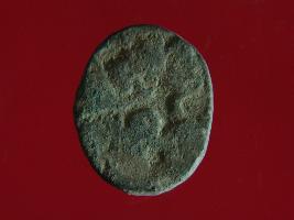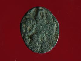 | Description / विवरण | It is a coin made of copper. The depression on obverse side depicts a deity sitting on a horse and holding a spear in his right hand. On reverse side bull in a sitting position. Shape is circular. Surface is smooth. Appearance is metallic bronze. |