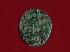 | Description / विवरण | It is a coin made of copper. The depression on obverse side depicts a deity sitting on a horse and holding a spear in his right hand. On reverse side bull in a sitting position. Shape is circular. Surface is smooth. Appearance is metallic bronze. |