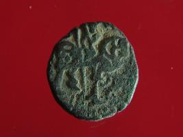| Description / विवरण | It is a coin made of copper. The depression on obverse side depicts a deity sitting on a horse and holding a spear in his right hand. On reverse side bull in a sitting position. Shape is circular. Surface is smooth. Appearance is metallic bronze. |