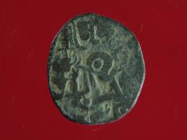 | Description / विवरण | It is a coin made of copper. The depression on obverse side depicts a deity sitting on a horse and holding a spear in his right hand and on reverse side a bull in a sitting position. Shape is circular. Surface is smooth. Appearance is metalic bronze. Hard patina deposited on it. |
