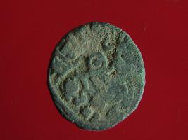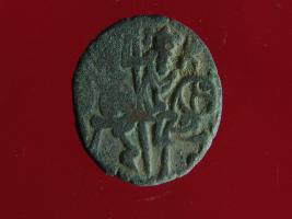 | Description / विवरण | It is a coin made of copper. The depression on obverse side depicts a deity sitting on a horse and holding a spear in his right hand and on reverse side a bull in a sitting position. Shape is circular. Surface is smooth. Appearance is metalic bronze. Hard patina deposited on it. |