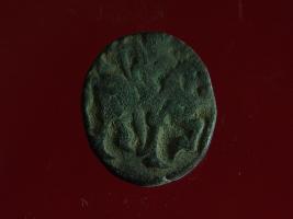 | Description / विवरण | It is a coin made of copper. The depression on obverse side depicts a deity sitting on a horse and holding a spear in his right hand and on reverse side a bull in a sitting position. Shape is circular. Surface is smooth. Appearance is metalic bronze. Hard patina deposited on it. |