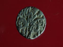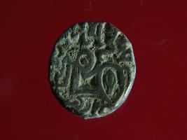 | Description / विवरण | It is a coin made of copper. The depression on obverse side depicts a deity sitting on a horse and holding a spear in his right hand and on reverse side a bull in a sitting position. Shape is circular. Surface is smooth. Appearance is metallic bronze. Hard patina deposited on it. |