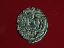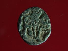 | Description / विवरण | It is a coin made of copper. The depression on obverse side depicts a deity sitting on a horse and holding a spear in his right hand and on reverse side a bull in a sitting position. Shape is circular. Surface is smooth. Appearance is metalic bronze. Hard patina deposited on it. |
