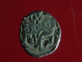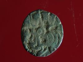 | Description / विवरण | It is a coin made of copper. The depression on obverse side depicts a deity sitting on a horse and holding a spear in his right hand and on reverse side a bull in a sitting position. Shape is circular. Surface is smooth. Appearance is metalic bronze. Hard patina deposited on it. |