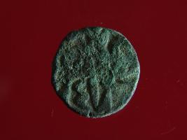 | Description / विवरण | It is a coin made of copper. The depression on obverse side depicts a deity sitting on a horse and holding a spear in his right hand and on reverse side a bull in a sitting position. Shape is circular. Surface is smooth. Appearance is metallic bronze. Hard patina deposited on it. |