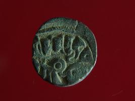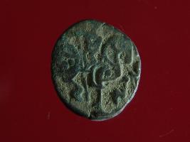| Description / विवरण | It is a coin made of copper. The depression on obverse side depicts a deity sitting on a horse and holding a spear in his right hand and on reverse side a bull in a sitting position. Shape is circular. Surface is smooth. Appearance is metallic bronze. Hard patina deposited on it. |