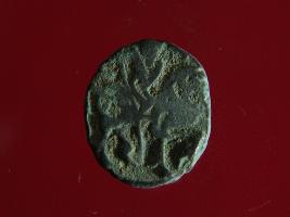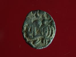 | Description / विवरण | It is a coin made of copper. The depression on obverse side depicts a deity sitting on a horse and holding a spear in his right hand and on reverse side a bull in a sitting position. Shape is circular. Surface is smooth. Appearance is metallic bronze. Hard patina deposited on it. |