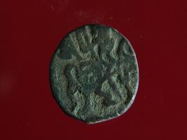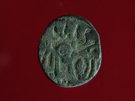 | Description / विवरण | It is a coin made of copper. The depression on obverse side depicts a deity sitting on a horse and holding a spear in his right hand and on reverse side a bull in a sitting position. Shape is circular. Surface is smooth. Appearance is metallic bronze. Hard patina deposited on it. |