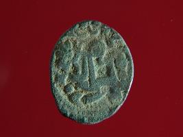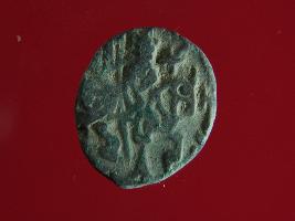| Description / विवरण | It is a coin made of copper. The depression on obverse side depicts a deity sitting on a horse and holding a spear in his right hand and on reverse side a bull in a sitting position. Shape is circular. Surface is smooth. Appearance is greenish. Hard patina deposited on it. |