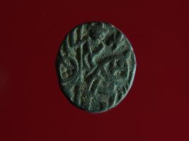 | Description / विवरण | It is a coin made of copper. The depression on obverse side depicts a deity sitting on a horse and holding a spear in his right hand and on reverse side a bull in a sitting position. Shape is circular. Surface is smooth. Appearance is greenish. Hard patina deposited on it. |