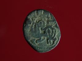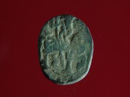 | Description / विवरण | It is a coin made of copper. The depression on obverse side depicts a deity sitting on a horse and holding a spear in his right hand and on reverse side a bull in a sitting position. Shape is circular. Surface is smooth. Appearance is greenish. Hard patina deposited on it. |