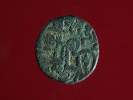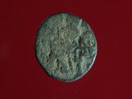 | Description / विवरण | It is a coin made of copper. The depression on obverse side depicts a deity sitting on a horse and holding a spear in his right hand and on reverse side a bull in a sitting position. Shape is circular. Surface is smooth. Appearance is greenish. Hard patina deposited on it. |