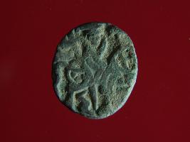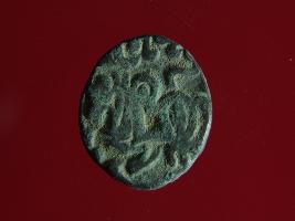 | Description / विवरण | This is a copper coin.The depression on obverse side depicts a deity sittting on a horse and holding a spear in his right hand and on reverse side a bull in a sitting position. Shape is circular. Surface is smooth. Appearance is metallic bronze. Hard patina deposited on it. |