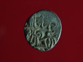 | Description / विवरण | This is a copper coin.The depression on obverse side depicts a deity sittting on a horse and holding a spear in his right hand and on reverse side a bull in a sitting position. Shape is circular. Surface is smooth. Appearance is metallic bronze. Hard patina deposited on it. |