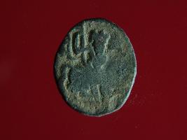 | Description / विवरण | This is a copper coin.The depression on obverse side depicts a deity sittting on a horse and holding a spear in his right hand and on reverse side a bull in a sitting position. Shape is circular. Surface is smooth. Appearance is metallic bronze. Hard patina deposited on it. |