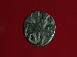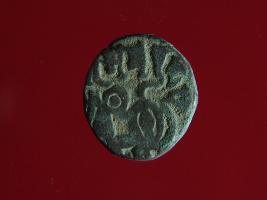 | Description / विवरण | This is a copper coin.The depression on obverse side depicts a deity sittting on a horse and holding a spear in his right hand and on reverse side a bull in a sitting position. Shape is circular. Surface is smooth. Appearance is metallic bronze. Hard patina deposited on it. |