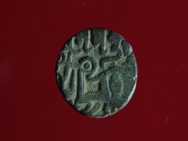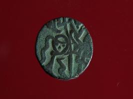 | Description / विवरण | This is a copper coin.The depression on obverse side depicts a deity sittting on a horse and holding a spear in his right hand and on reverse side a bull in a sitting position. Shape is circular. Surface is smooth. Appearance is metallic bronze. Hard patina deposited on it. |